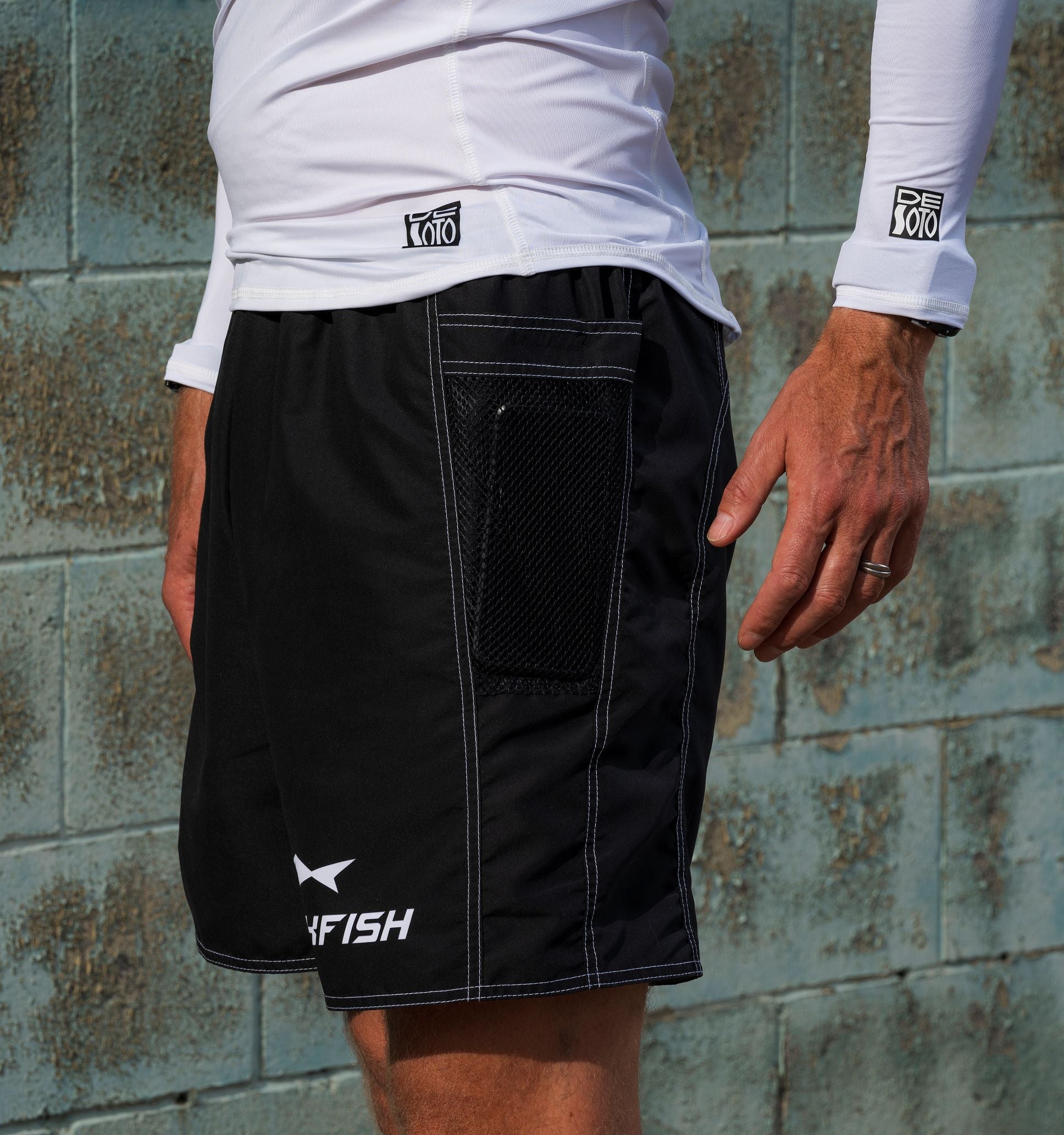 - Two funnel mesh pockets drain quickly and seal with velcro to keep contents secure. Large enough to fit large smart phones.