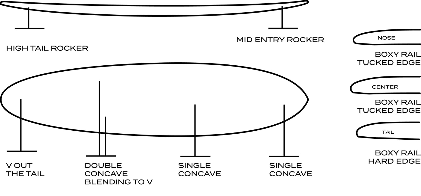 When designing this board Walden started with a classic mid-length egg and the trademark Magic bottom and hard rails. The pulled in nose, rounded pin tail and long drawn out outline makes for a highly maneuverable yet smooth riding board. it has plenty of volume to make paddling easy but with enough nose rocker and tail kick to handle steepr drops.
